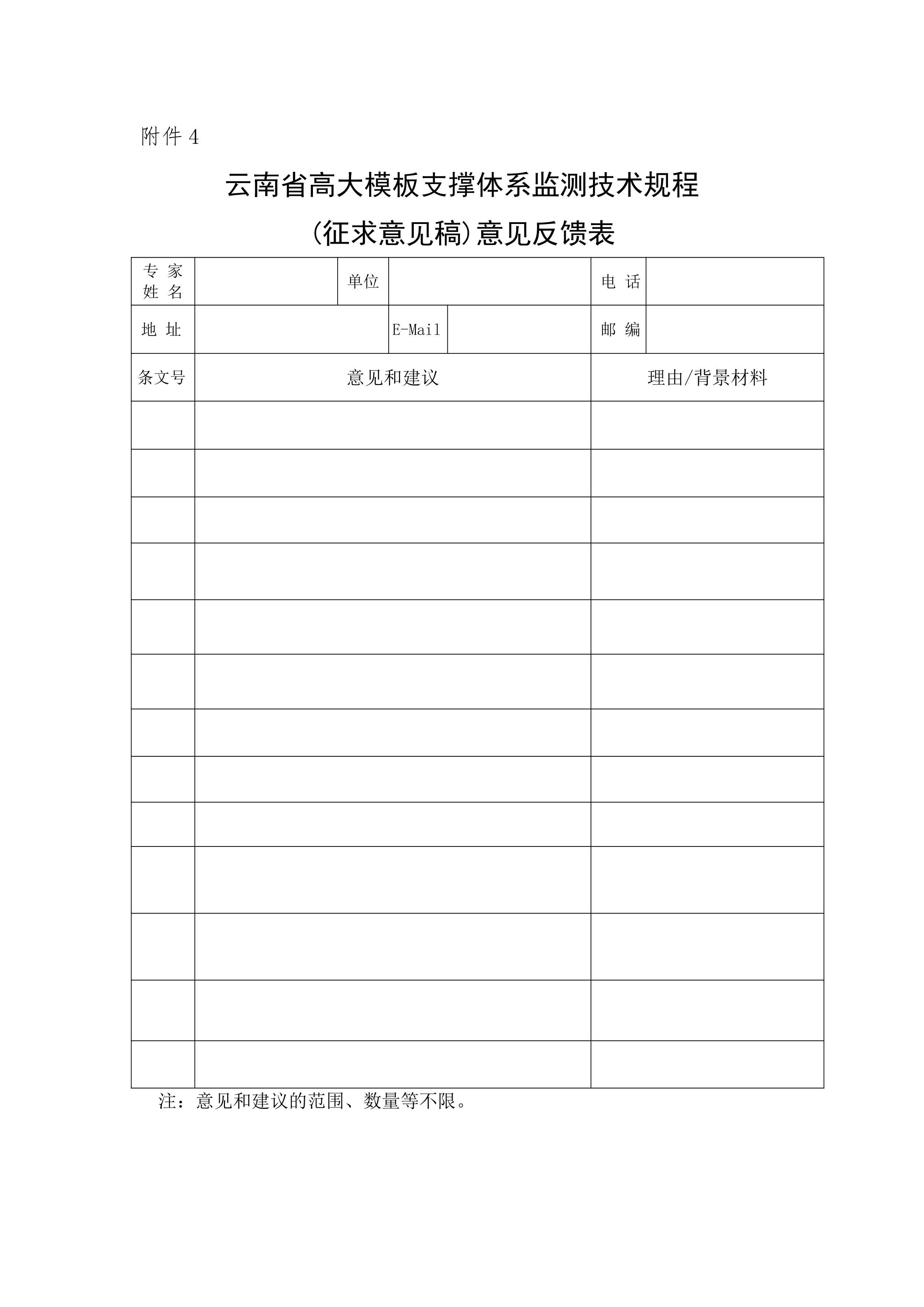 4.云南省高大模板支撐體系監(jiān)測技術(shù)規(guī)程(征求意見稿)意見反饋表