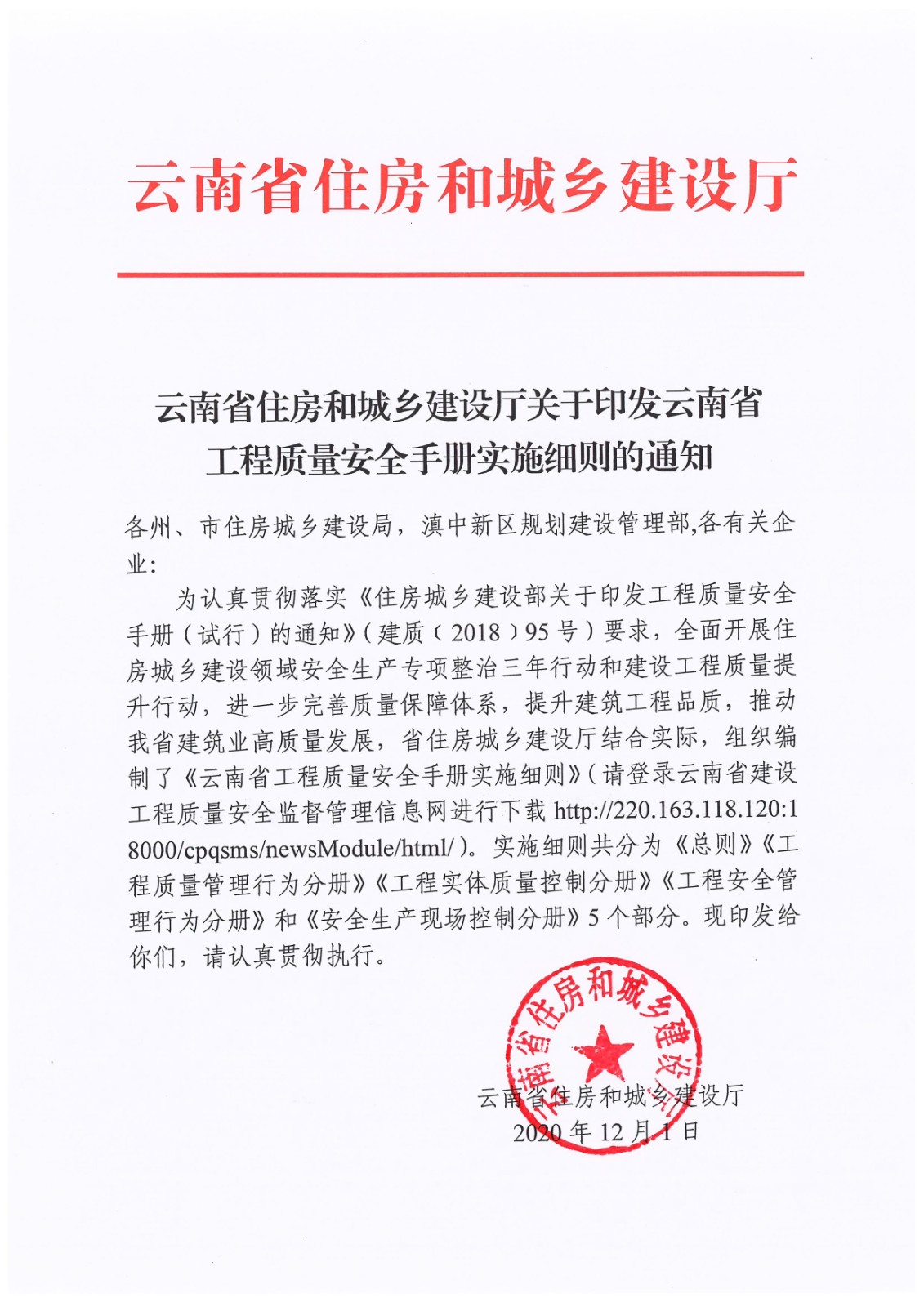云南省住房和城鄉(xiāng)建設(shè)廳關(guān)于印發(fā)云南省工程質(zhì)量安全手冊實施細(xì)則的通知