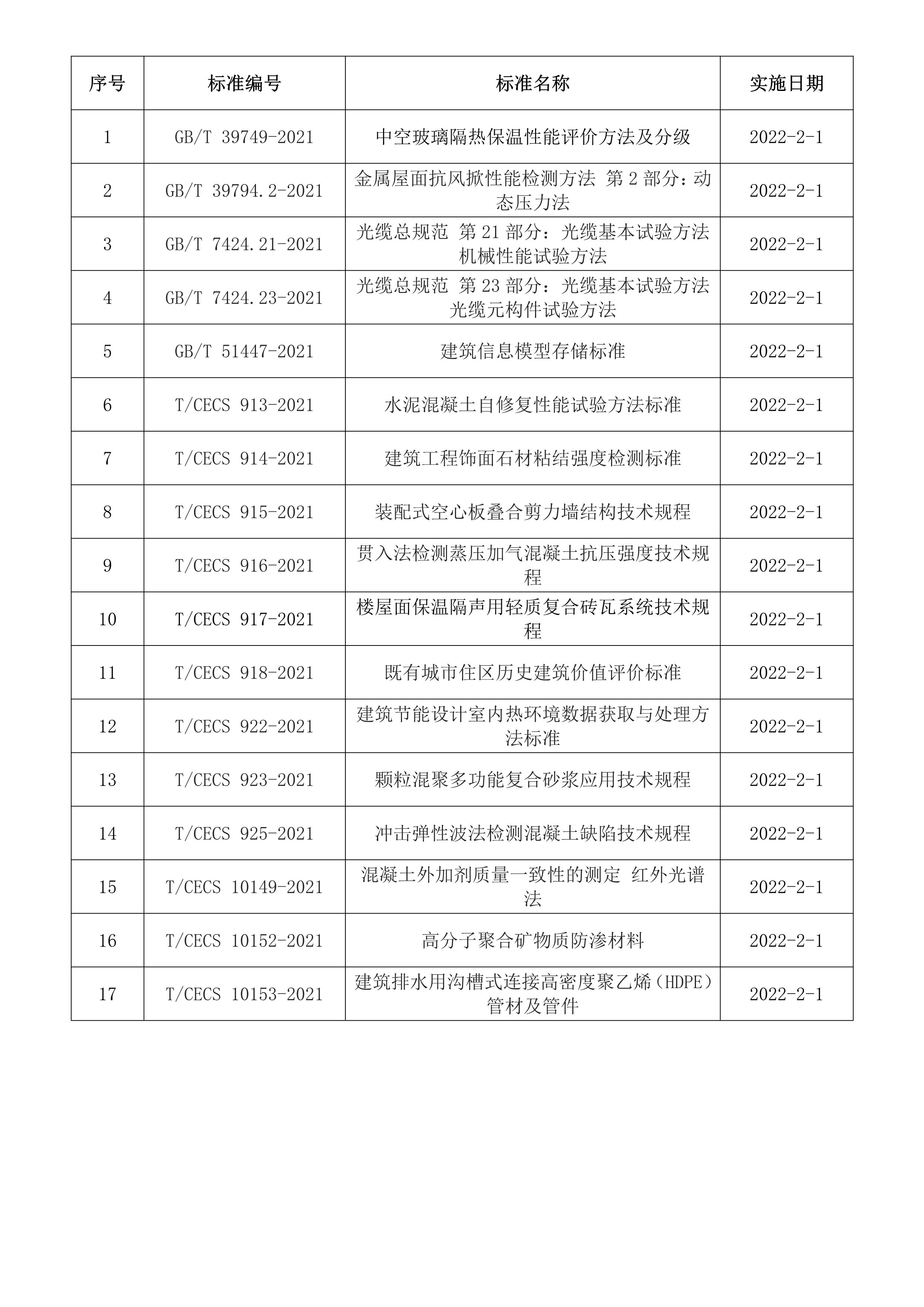 2022年2月開始實(shí)施的工程建設(shè)標(biāo)準(zhǔn)